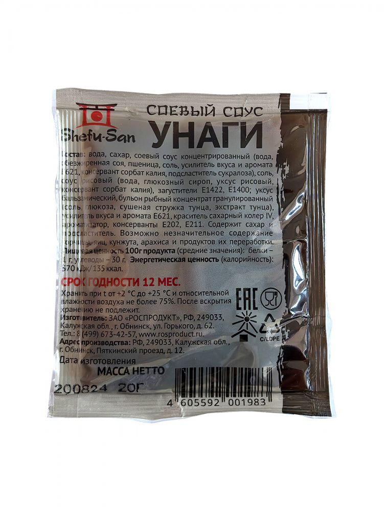 Shefu-San Унаги это соус по нашей уникальной рецептуре, отличается насыщенным сладко-соленым вкусом с тонкими копчеными нотками. Идеально подходит к холодным закускам и горячим блюдам из рыбы и морепродуктов. Часто используется для приготовления роллов и обжарки лапши.