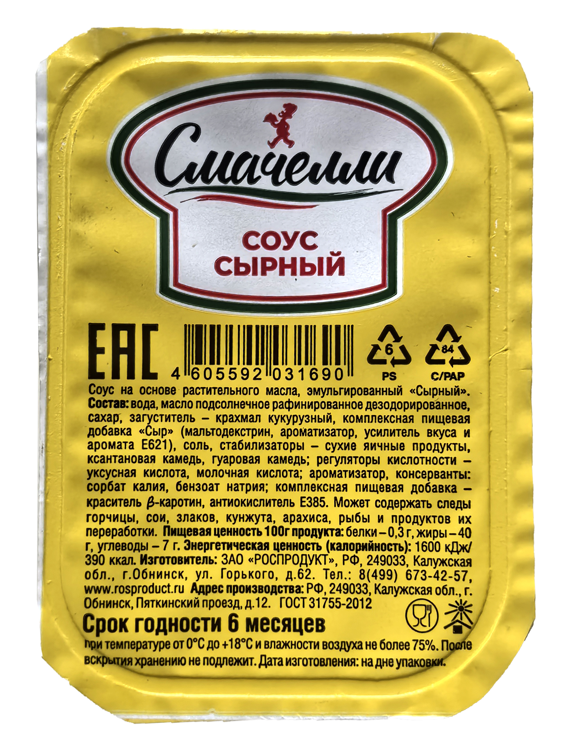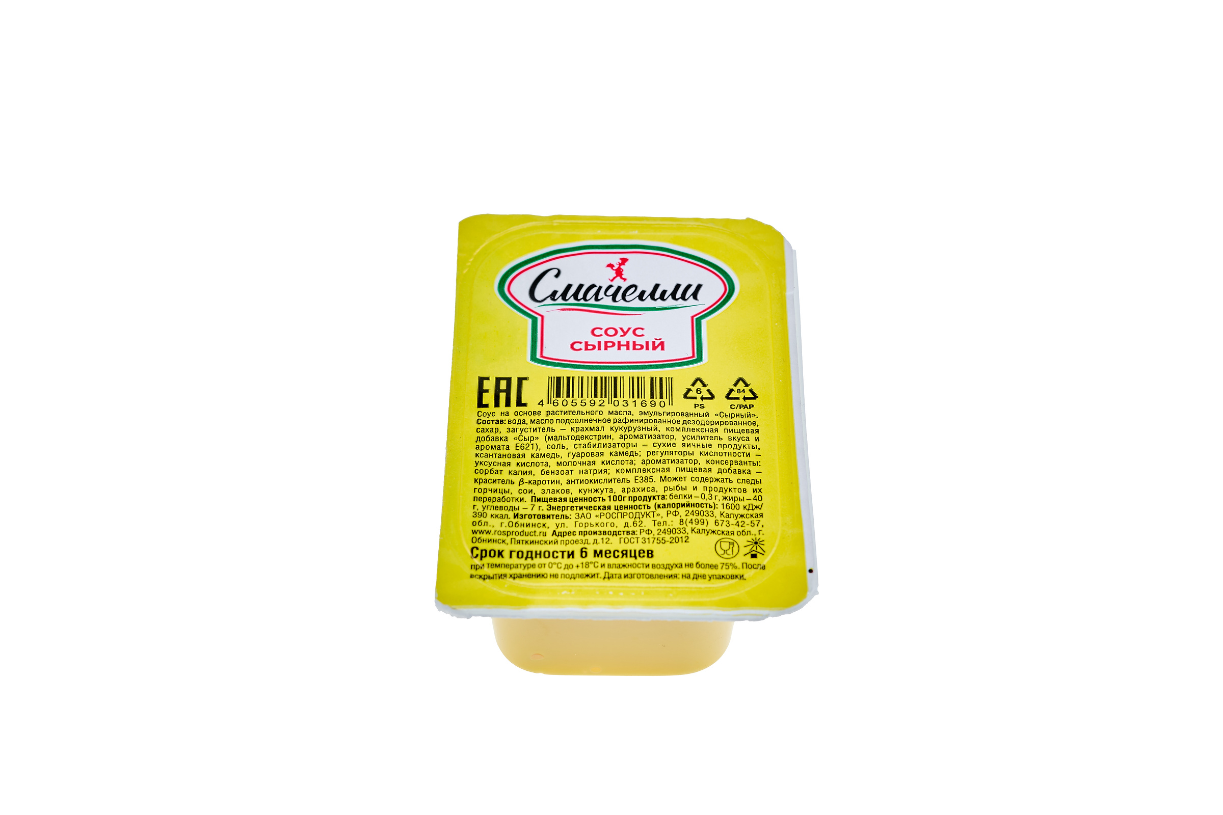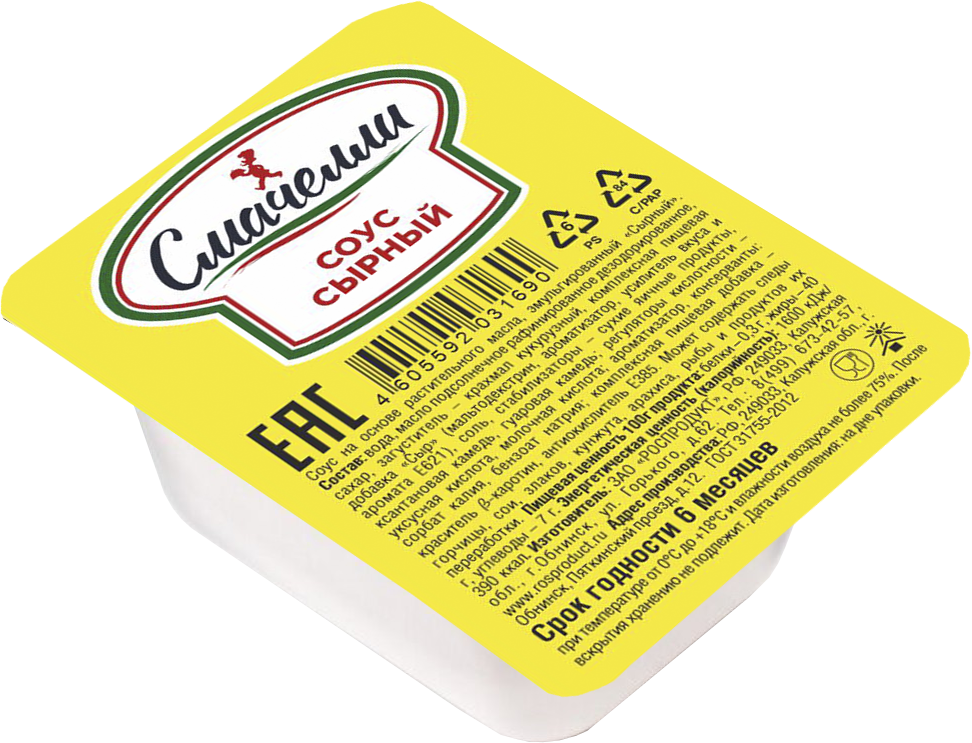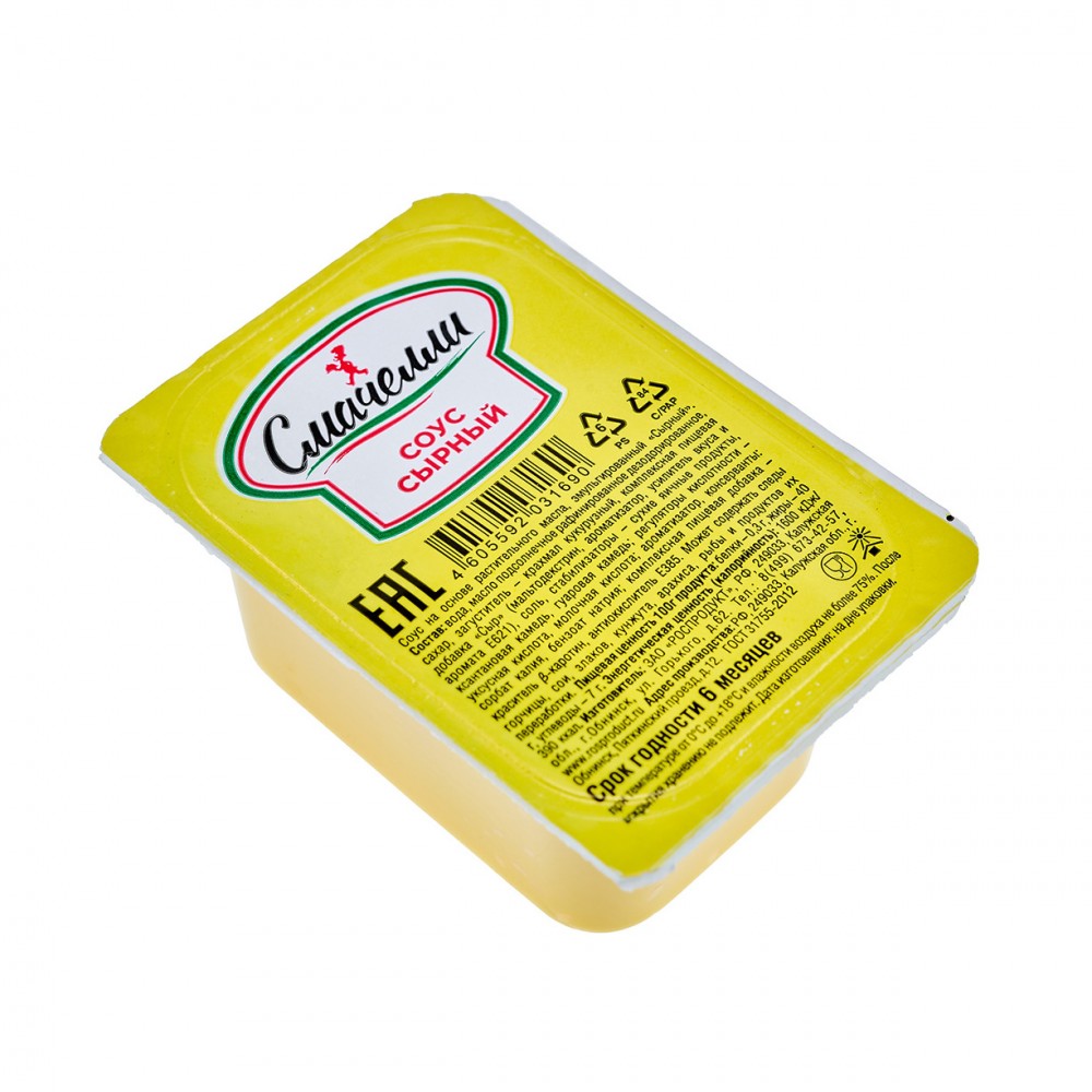 Классический сырный соус. Изготовленный с использованием только натуральных продуктов и натуральных ароматизаторов. Идеально подходит для употребления с наггетсами, картофелем фри, а также , как заправка для спагетти.