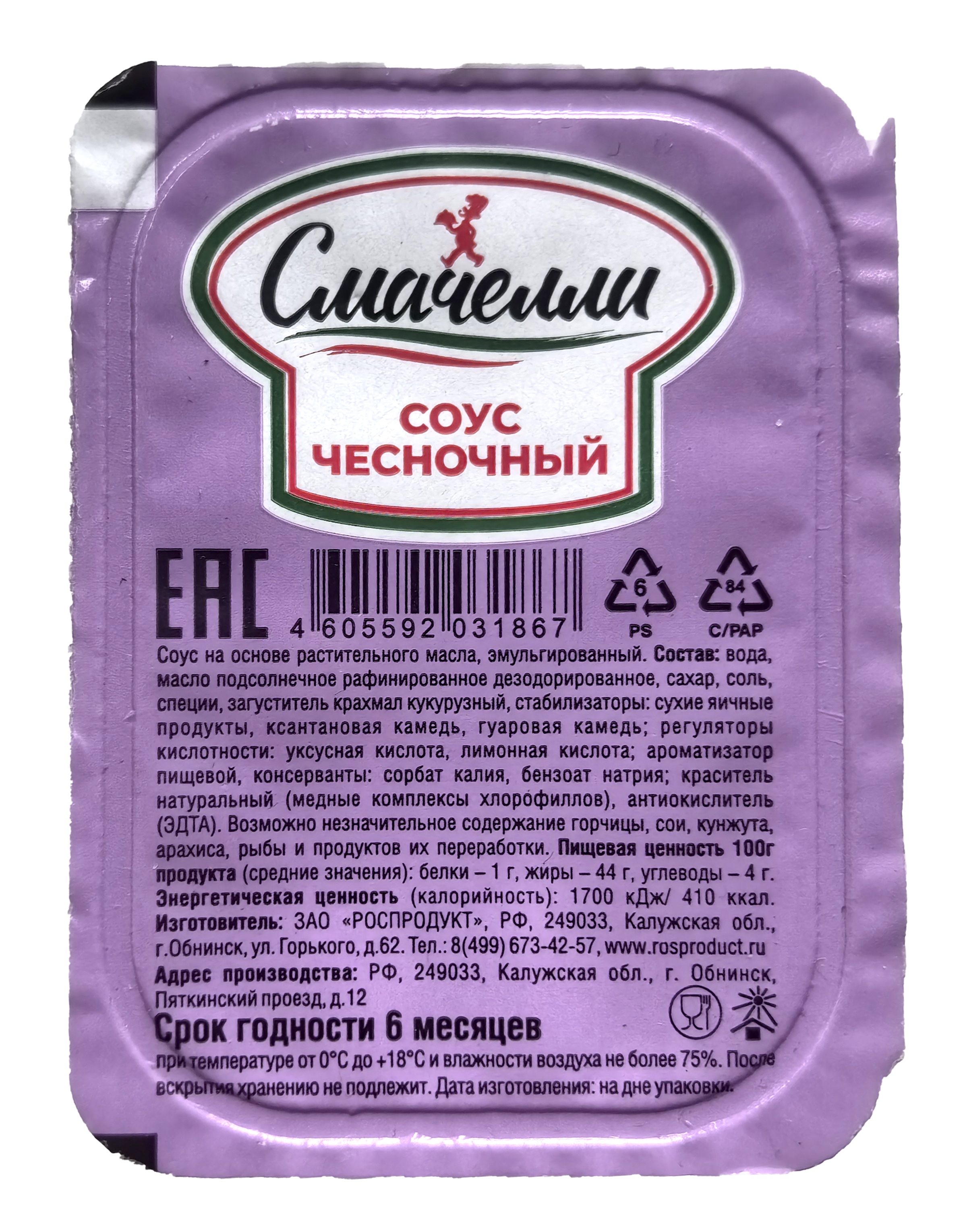 Порционный Чесночный соус Порционный Чесночный соус