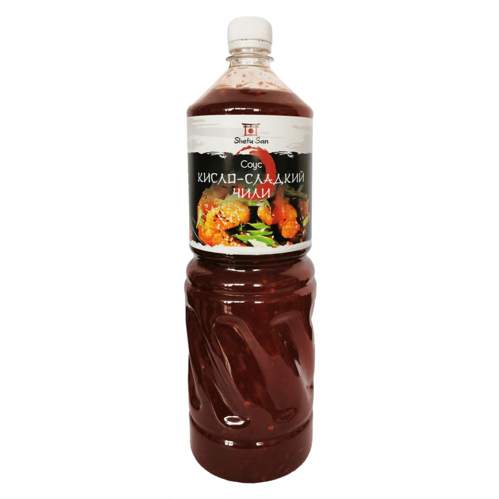 Представляет собой менее острый вариант по сравнению с оригинальным соусом чили. Shefu-San чили кисло-сладкий это особый кисло-сладкий вкус, который отлично сочетается с морепродуктами и жареной рыбой. Может добавляться к блюдам, приготовляемым на воке, для заправки салатов и в качестве маринадов.